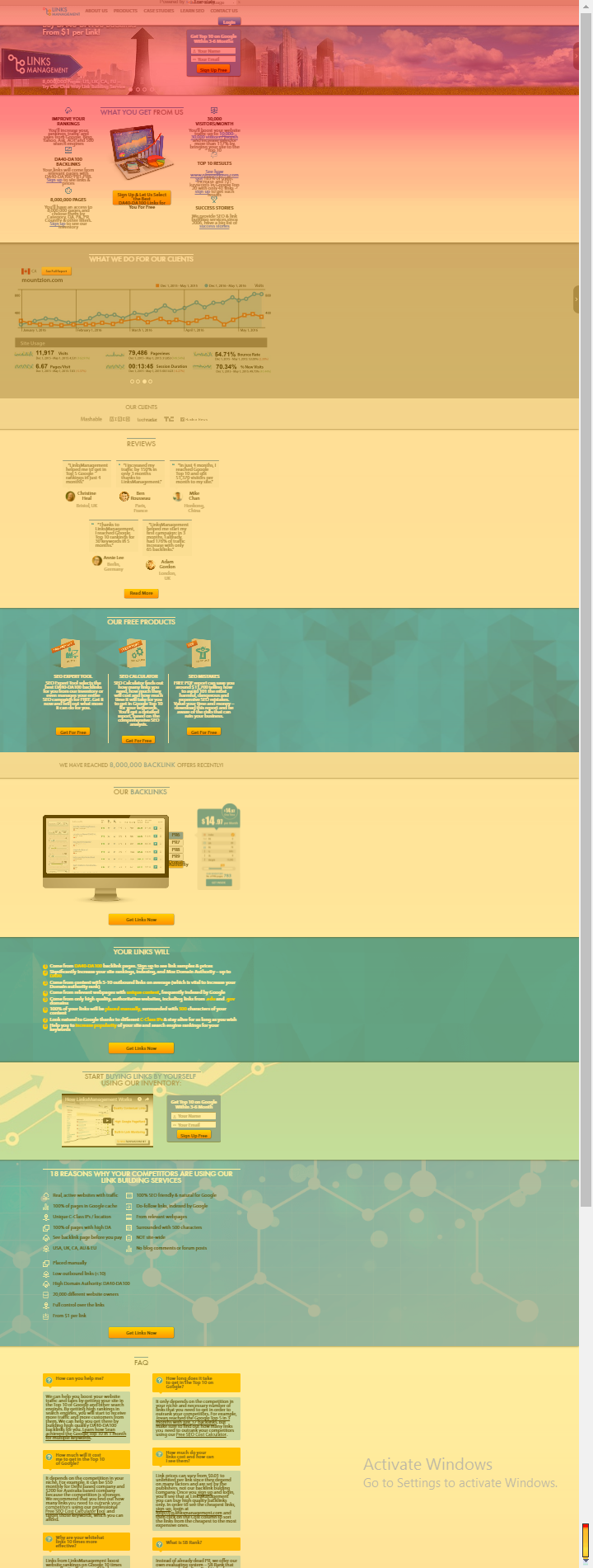 LinksManagement is the only SEO company that has been consistent with their offer of getting my web sites on the first page of most search engines, including Google.com. I have just started a new campaign for two web sites within the past month and I have already seen an impressive movement on Google`s search engine for at least three more key words.